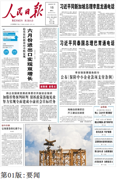 新华社北京7月14日电 国务院总理李克强日前签署国务院令,公布《保障中小企业款项支付条例》(以下简称《条例》),自2020年9月1日起施行。