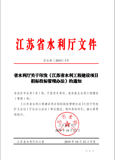 江苏省水利厅办公室 2019 年 10 月 22 日印发